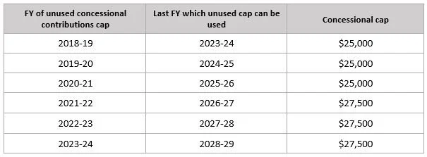 After five years, any of your unused concessional contributions cap amounts will expire. See the table below: